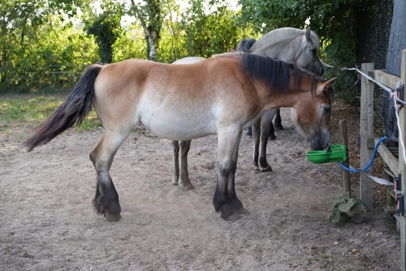 Sehr liebe Stutfohlen, wird in diesem Jahr zwei Jahre alt. Gewöhnt an Hunde und Traktor, läuft wie ein Hund hinter dir her im Weide. Wird eine große Größe erreichen, stammt von einem der besten Züchter aus Deutschland. Gutes Pedigree. Freundlich im Umgang und beim Hufschmied.