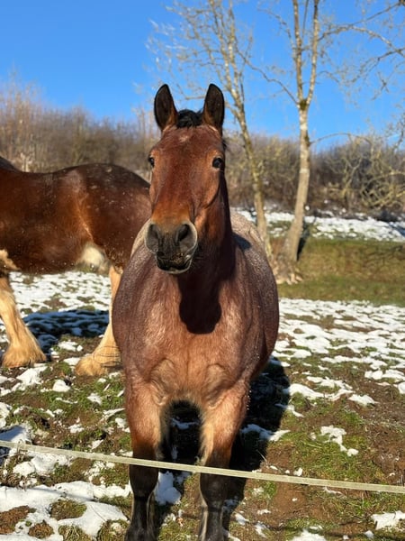 Amira est très proche des humains, câline, joueuse et curieuse. Elle adore les promenades et se montre totalement intrépide – tracteurs, véhicules de secours, sirènes ou camions klaxonnant ne lui posent aucun problème. Elle peut rester seule et partir en promenade en solo. Amira connaît le travail à la longe et le travail en liberté, mais elle prend beaucoup plus de plaisir lors des sorties en extérieur. Elle est motivée pour apprendre, mais en raison de sa taille et de son inexpérience, elle a besoin d’un contact clair et cohérent. Elle n’a pas été montée, mais connaît le poids d’un cavalier en manège et en extérieur. L’année dernière, nous avons peu travaillé avec elle, c’est pourquoi je la propose en semi-roue. Avec un entraînement adapté, elle deviendra une partenaire idéale pour les balades ou même pour le trait. Le soin des sabots et le chargement dans un van se passent avec un peu de patience. Actuellement, Amira vit en paddock avec accès à la pâture 24/7 en été, directement à la stalle. Elle connaît également le box. Dans le groupe, elle occupe une position intermédiaire. Important !! – Cheval ekzematueux Il y a deux ans, Amira a développé une forte allergie aux insectes (eczéma estival). Malgré diverses mesures, aucune solution optimale n’a encore été trouvée. En paddock, elle n’est pas totalement protégée contre les moustiques. Un autre mode d’élevage ou une région avec moins d’insectes serait donc préférable. En hiver, elle n’a pas de problème. Un test allergique et une prise de sang datant de 2024 sont disponibles. Priorité au bien-être – je recherche un foyer aimant et adapté pour Amira. Si l’environnement lui convient, nous nous mettrons d’accord sur le prix. PS : Sur les photos, la crinière et la queue sont assez courtes et fines, cela est dû à l’eczéma estival et à ses démangeaisons.