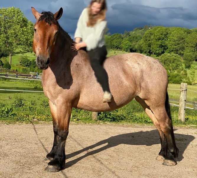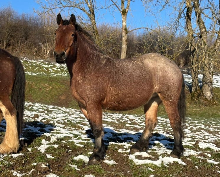 Amira is very people-oriented, affectionate, playful, and curious. She loves walks and is completely fearless during them – tractors, flashing lights, sirens, or honking trucks are no problem. She can be left alone and also go for walks by herself. Amira is familiar with groundwork and lunging, but she enjoys walks much more. She is motivated to learn but requires clear handling due to her size and inexperience. She has not been ridden, but she is accustomed to rider weight in the arena and on trails. We have done very little with her in the past year, so I am offering her as a raw horse. With proper training, she will make a wonderful leisure partner for rides or even a carriage horse. Farrier work and loading onto a trailer work with a bit of patience. Currently, Amira is kept in a paddock with 24/7 turnout during the summer right next to the stable; she is also familiar with box stall housing. In the herd, she holds a middle position. Important note!! – Eczema horse Amira developed a severe insect allergy (summer eczema) two years ago. Despite various measures, an optimal solution has not yet been found. She is not fully protected from mosquitoes in her paddock. A different housing situation or a region with fewer insects would be beneficial. In winter, she has no issues. An allergy test and blood work from 2024 are available. Place before price – I value a loving and suitable home for Amira above all. If the environment is right, we will certainly agree on a fair price. P.S.: In the photos, her mane and tail appear quite short and thin, which is due to the summer eczema and itching.