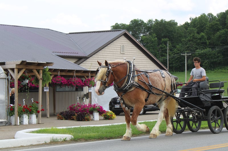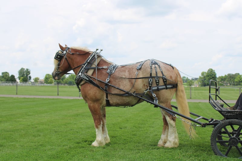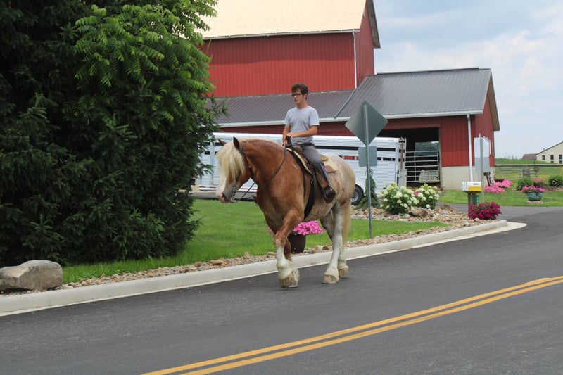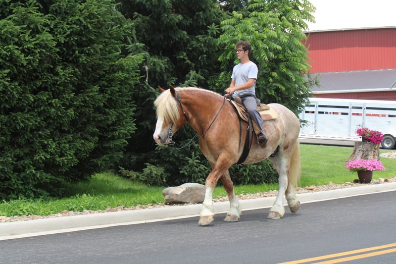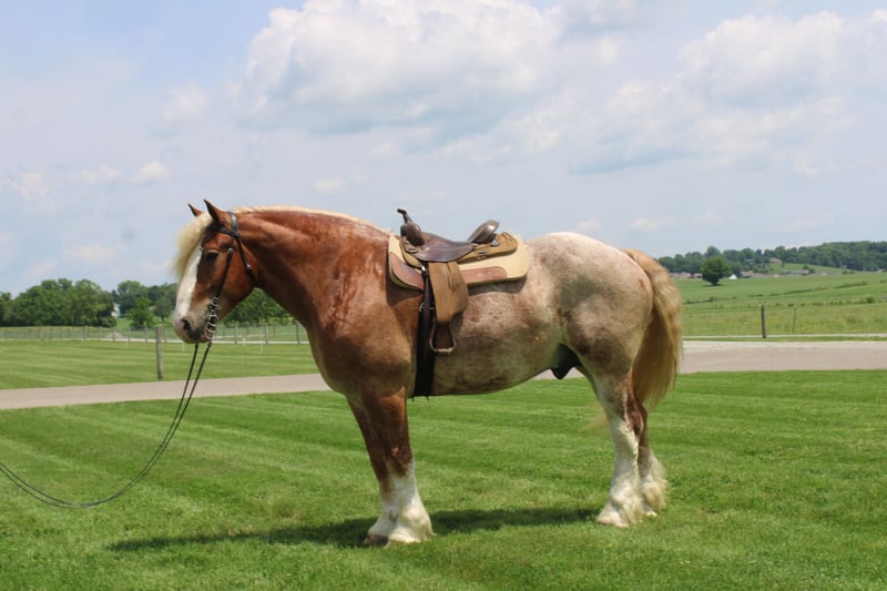 ⚔️ The HORSEMAN's Select ⚔️ Happening now thru MONDAY | JULY 28th - Available EXCLUSIVELY on HorseBid's website! For more details and to register visit: www.Horsebid.com CONSIGNOR CONTACT: Hershberger's Farm 330-600-0197 LOCATION: Millersburg, Ohio BREED: Belgian X Clydesdale REGISTERED: No REGISTERED NAME: Hershy's Conway COLOR: Roan HEIGHT: 17 AGE: 6 GENDER: Gelding Hershy's Conway is a 6 year old Belgian X Clydesdale gelding! He is an absolute baby to be around. Conway has been here on our farm for about 2 and a half years and has done about anything there is to do here on the farm. His pleasing attitude makes him suitable for any job you may have for him. Here on the farm he has done anything from helping train colts to drive, to working in the fields, to giving kids rides on our merry-go-round. He has been out on the state road in lots of heavy traffic and the big trucks flying by don't faze him. Conway is also a great trail horse and doesn't mind making his own trail through the brush if there is none and he absolutely loves the water if there is a stream to go through. He rides English or Western and easily picks up both leads. He is super quiet and beginner friendly but is still not too lazy to be fun to ride. Conway doesn't care how many kids pile on his back he will take care of them. He is absolutely beginner safe and always looks out for his rider. And if you can get up in the wagon and hold the reins you can drive him that's just the type of horse that he is. Conway stands nice for the farrier and also loves to get a bath. If you are looking for a lifetime companion Conway checks all the boxes and with his WOW COLOR he will be noticed wherever he goes! For more info call or text John @ 330-600-0197.