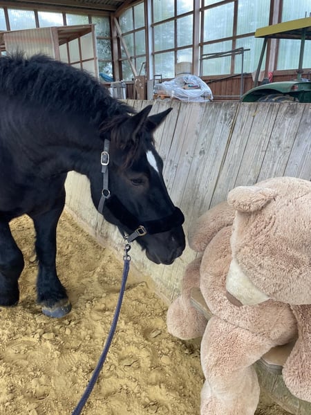 Max ist ein 9-jähriger belgischer Kaltblutwallach (ca. 1,70 m groß, rund 850 kg schwer) – ein echter Hingucker mit imposanter Erscheinung und einem Herz aus Gold. Er ist grundausgebildet, kennt die Arbeit am Boden sehr gut und macht Gelassenheitstraining mit Bravour. Auch das Fahren vom Boden ist für ihn kein Problem – deshalb können wir uns Max sehr gut als Freizeitfahrpferd oder sogar als Holzrückepferd vorstellen. Max ist vom Typ her sensibel und braucht eine sichere, ruhige Bezugsperson, die ihm Vertrauen und Orientierung gibt. Auch wenn er kräftig wirkt, ist er eher ein vorsichtiger Charakter, der in unsicheren Momenten einfach den Rückzug sucht. Böse Absichten hat er dabei nie – er braucht einfach jemanden, der ihm Sicherheit schenkt und ihn gelassen führt. Er ist angeritten, wird aber aktuell nicht regelmäßig geritten. Ein Probereiten ist daher nur bedingt möglich. In der Herde zeigt sich Max sozial, verspielt und freundlich – er liebt es, mit seinen Kumpels zu toben, und wünscht sich auch im neuen Zuhause einen passenden Pferdefreund. Bisher stand er mit Wallachen zusammen, über Stuten können wir daher keine Aussage treffen. Gesundheitlich ist Max PSSM1-positiv und hat eine Warzenmauke (typisch Kaltblut, aber aktuell nicht stark ausgeprägt. ) Mit entsprechender Haltung und Fütterung lässt sich beides gut managen. Ein großes Blutbild ist gerade gemacht worden und dies ist ohne weitere Auffälligkeiten. Für Max gilt ganz klar: Platz vor Preis! Er soll ein Zuhause finden, in dem man seine sensible Seele sieht, ihm Sicherheit gibt und seine sanfte Art zu schätzen weiß. Max steht in Krefeld-Forstwald, weitere Fotos und Videos versende ich gerne auf Anfrage. ❤️