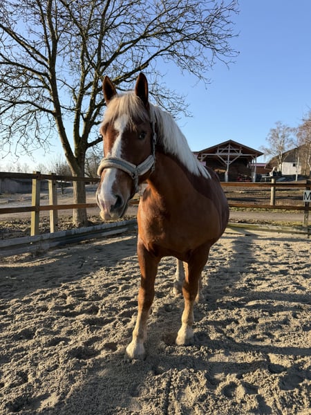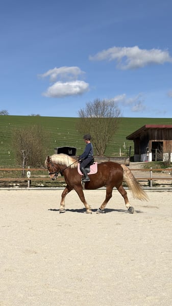 Verkaufe schweren Herzens, wenn alles passt, meinen süddeutschen Kaltblutwallach, da ich ihm aus gesundheitlichen Gründen meinerseits nichts mehr gerecht werde. Severino ist seit er 3 Jahre alt ist bei mir und hat eine solide Ausbildung genossen & ist bis heute immer noch einmal die Woche in Beritt. Er läuft Dressurmäßig sehr gut liebt es aber auch mal kleine Sprünge zu machen. Beim Vorbesitzer wurde er wohl auch eingefahren, ich selbst habe ihn nie gefahren. Auch die Freiarbeit und vorallem die Zirzensik liegt im sehr - hier ist er immer mit sehr viel stolz dabei. Im Gelände ist er einfach ein absoluter Schatz - grundsätzlich würde ich ihn aber nicht als Anfängerpferd einstufen, da er trotzdem etwas Temperament hat. Aktuell steht er im Offenstall und ist hier egal mit welchem Pferd eigentlich immer unkompliziert. Er ist vierfach beschlagen & wurde im März vom Osteopathen erst frisch durchgecheckt. Zähne wurden ebenfalls frisch gemacht im Februar. Er war bei mir immer gesund, hat allerdings eine einseitige Kehlkopflähmung und auf einem Auge nimmt er maximal Umrisse war - dies war aber bei uns nie ein Problem weder im Gelände noch auf dem Platz oder in der Halle. Er wird ausdrücklich nicht in Boxenhaltung verkauft, da ich mir dies für ihn nicht wünsche! Kein Notverkauf - Verkauf ohne Zubehör, kann aber auf Wunsch miterworben werden (neuer Deuber Sattel aus Feb. 26). Gerne bei Fragen einfach melden!