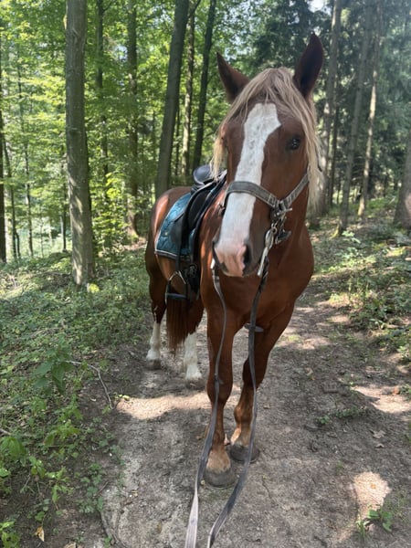 Wegen Bestandsminderung suche ich für meinen Süddeutschen Kaltblut Wallach „Romeo“ ein neues Zuhause. Romeo ist 2,5 Jahre alt, und wurde im Oktober mit 1,66 cm gemessen. Er ist dem Alter entsprechend longiert, leicht gefahren und kennt den Sattel schon. Rembrandt x Sam PSSM frei Bei Interesse gerne melden.