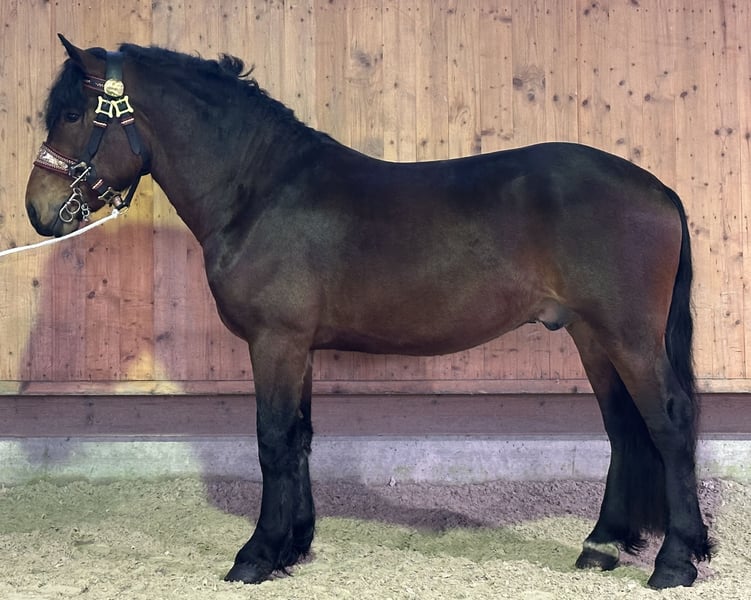 German Cold Blood Gelding – Perfect for Leisure Riding! We are offering a beautiful bay South German Cold Blood gelding for sale. Born in 2023, he is already an impressive horse with a height of 16.1 hh. His friendly and calm temperament makes him an ideal companion for leisure riding. The gelding is healthy, well-groomed, and exhibits excellent manners and a willingness to learn. Whether for long trail rides, walks, or simply as a family horse – this Cold Blood is versatile and impresses with his gentle nature. He has been driven in pairs, ridden in the terrain, and trained in the indoor arena. If interested or for further information, we look forward to hearing from you. Viewing and test rides are available by appointment.