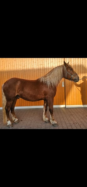 Süddeutsches Kaltblut – Vielversprechender Fuchs-Wallach, geb. 2023 Dieser imposante Süddeutsche Kaltblut-Wallach besticht durch seine kräftige Statur und sein freundliches Wesen. Mit einem Stockmaß von 168 cm bietet er die perfekte Größe für vielseitigen Einsatz und zeigt bereits jetzt viel Potenzial im Bereich Fahren. Sein eleganter Fuchsfell und seine ausgeglichene Art machen ihn zu einem idealen Partner für ambitionierte Fahrer, die Wert auf zuverlässige und gut gerittene Pferde legen. Der junge Wallach ist bestens auf das Fahren vorbereitet und zeigt sich in der Bahn sowie im Gelände . Sein angenehmer Charakter und seine robuste Konstitution machen ihn zu einem zuverlässigen Begleiter für den täglichen Einsatz sowie für anspruchsvollere Fahrten. Ein vielversprechendes Pferd für alle, die einen kräftigen, gut erzogenen Kaltblut-Wallach suchen, der sich sowohl im Fahren als auch in der weiteren Ausbildung hervorragend entwickeln wird. Bei Interesse freuen wir uns auf Ihre Kontaktaufnahme. läuft auch am Planwagen