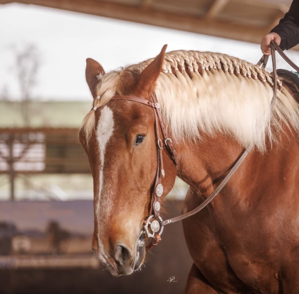 ⭐️ Absolute dream home sought for dream horse ⭐️ With a heavy heart... this is how most horse sale ads begin. I could start like this too, or sometimes love also means being able to let go. I am looking for a 10-star home for my 7-year-old South German Coldblood gelding Toni (approximately 1.68m at the withers). Toni was professionally started under saddle at the age of 4. Even during the initial training, there was not a single wrong step or a buck, and that has not changed to this day. Toni is also very well-behaved in handling. He responds very finely to the aids. Our 5-year-old son was able to ride him alone in his first "riding lesson" freely in the riding arena, including slalom and backup. Since last year, I have been competing with him in EWU tournaments in the walk/trot classes, both in trail and in ranch riding, horsemanship, and pleasure. Although the poles are not really his friends, he has ALWAYS been placed in all the tests we have ridden in the last two years, and we have mostly brought home trophies. He loads easily and behaves just as well away from home as he does at home! We have also participated in various orientation rides, and there was no task he refused in any way, whether it was walking on tarps, going through flapping curtains, pulling a kayak behind him, popping balloons next to him from horseback, dealing with a noise bag, or riding through a pavilion with strips of rescue foil hanging down from the ceiling (once we even got stuck in the frame due to its size, but he remained calm). He does everything willingly. He goes out into the terrain without any problems, both alone and in a group. It doesn't matter if you haven't had time to ride in the last few weeks; you can just get on and go, and he behaves as if you were out with him just yesterday. He has been shod four times with me; we once tried him barefoot because I couldn't find a farrier for a while, but he didn't really cope with that and was very sensitive. During that time, we used hoof glue, which worked very well. Of course, Toni is farrier-friendly. Since I value transparency, I want to disclose that Toni had an accident as a foal on the pasture and got caught in barbed wire with his hind leg, resulting in scars on his hock. However, this does not affect him; he has never been lame with me due to this. After his castration, a spermatic cord fistula and probably sarcoids developed on the sheath, which I had surgically removed (about 3 years ago), and since then, there has been nothing. He has a surgical insurance policy, which could also be transferred if desired. Otherwise, the veterinarian has only been here for vaccinations. I had him tested for PSSM, and he is PSSM N/N, meaning he does not have it and is healthy. Now one might wonder why I am selling such a wonderful horse. The reason is that I have developed a great interest in Western riding, enjoy taking lessons in this area, attending clinics, and would like to compete beyond the walk/trot level. Toni excels in the walk/trot classes, but he finds it extremely difficult to canter in the riding arena due to his size/mass and build. I would find it very unfair to push him into a discipline for which he is simply not built. I wish for him a leisure rider who primarily enjoys being outdoors with his horse, going out to relax, participating in orientation rides, etc. Toni is kept at home in a run-in shed and will only be sold under similar conditions. A high-quality custom saddle (original price €6900) can be taken over for an additional fee. For questions, please call 0176/61635744.