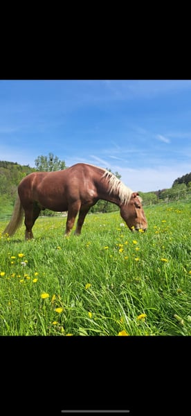 ⭐️Absolutes Traumzuhause für Traumpferd gesucht ⭐️ Schweren Herzens…. So fangen wohl die meisten Anzeigen eines Pferdeverkaufs an. So könnte ich auch beginnen, oder auch manchmal heißt Liebe auch loslassen können. Ich bin auf der Suche nach einem 10 Sterne zu Hause für meinen 7- jährigen Süddeutschen Kaltblutwallch Toni (ca1,68m Stockmaß) Toni wurde. 4 Jährig professionell angeritten. Selbst beim anreiten kam weder ein falscher Schritt noch ein Buckler noch sonst irgendetwas, bis heute nicht. Auch im Umgang ist Toni sehr brav. Er steht sehr fein an den Hilfen. Unser 5 -Jähriger Sohn konnte ihn in seiner 1. „Reitstunde“ alleine frei auf dem Reitplatz reiten inklusive Slalom und BackUp. Ich bin seit letztem Jahr mit ihm auf EWU Turnieren in den Walk-/Trot Klassen gestartet, sowohl im Trail, als auch in der Ranch Riding, Horsemanship und Pleasure. Und obwohl die Stangen nicht so seine Freunde sind, war er IMMER in allen Prüfungen die wir in den letzten zwei Jahren geritten sind platziert, überwiegend haben wir Pokale mit nach Hause genommen. Er lässt sich problemlos verladen und benimmt sich auswärts genauso brav wie zu Hause! Zudem haben wir auch an verschiedenen Orientierungsritten teilgenommen, auch hier gab es keine Aufgabe die er in irgendeiner Weise verweigert hat, egal ob Planen, Flattervorhänge, Schlauchboot hinterher ziehen, Luftballons vom Pferd aus neben ihm zerplatzen lassen, Klappersack, durch ein Pavillon reiten von dessen Decke Streifen mit Rettungsfolie runterhängen (einmal sind wir aufgrund der Größe sogar oben im Gestänge stecken geblieben, selbst da bleib er cool) etc… er macht alles brav mit. Er geht auch problemlos sowohl alleine, als auch in der Gruppe, ins Gelände. Dabei ist es völlig Wurstegal ob man in den letzten Wochen evtl nicht die Zeit hatte sich aufs Pferd zu setzen, drauf setzen und los, er verhält sich so als wenn man gestern das letzte Mal mit ihm draußen war. Bei mir ist er 4 mal beschlagen, wir hatten es mal Barhuf versucht da ich eine zeitlang keinen Schmied für ihn gefunden habe, da kam er aber nicht wirklich zurecht und reagierte sehr empfindlich. In der Zeit haben wir ihn dann beklebt, was auch sehr gut funktionierte. Selbstverständlich ist Toni Schmiedefromm. Da ich Wert auf Transparenz lege, möchte ich auch offen legen dass Toni im Fohlenalter einen Unfall auf der Alm hatte und mit dem Hinterbein im Stacheldraht festhing, hiervon hat er Narben am Sprunggelenk davongetragen. Beeinflusst ihn aber nicht, er war aufgrund dessen bei mir niemals lahm. Nach seiner Kastration hat sich eine Samenstrangfistel und dadurch wahrscheinlich Sarkoide an der Schlauchtasche entwickelt, dies hab ich operieren lassen (ca 3 Jahre her) und seitdem war nichts mehr. OP Versicherung ist für ihn vorhanden, könnte auch mit übernommen werden falls gewünscht. Ansonsten war der Tierarzt sonst nur zum impfen hier. Ich hab ihn auf PSSM testen lassen hier ist er PSSM N/N er hat es also nicht und ist gesund. Jetzt fragt man sich bestimmt, warum verkauft man so ein tolles Pferd? Der Grund ist dass ich sehr viel Gefallen am Westernreiten entwickelt habe, sehr gerne diesbezüglich Unterricht nehme, zu Kursen fahre und auch gerne Turniere über den Walk/Trot Bereich hinaus gehen möchte. Toni ist Mega spitze in den Schritt/Trab Klassen aber es fällt ihm unheimlich schwer auf dem Reitplatz/Halle aufgrund seiner Größe/Masse und seines Körperbaus zu galoppieren. Und ich fände es sehr unfair ihm gegenüber ihn in eine Schiene rein zu pressen für die er körperlich einfach nicht gebaut ist. Ich wünsche mir für ihn einen Freizeitreiter der überwiegend gefallen dran hat mit seinem Pferd im Gelände zu sein, raus gehen die Seele baumeln lassen, Orientierungsritte, etc. Toni steht bei mir daheim im Offenstall, und wird auch ausschließlich in Offenstallhaltung verkauft. Hochwertiger Maßsattel (NP 6900€) kann gegen Aufpreis mit übernommen werden. Bei Fragen 0176/61635744