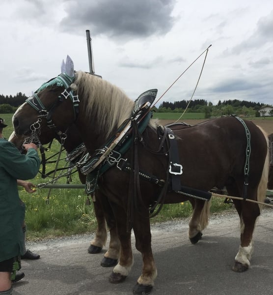 Zum Verkauf steht wegen Bestandsreduzierung unser 12 jähriger Süddeutscher Kaltblut Hengst Hannes. Er ist zwei und vierspännig gefahren braucht aber da wieder ein bisschen Routine( kennt auch schon Festzüge). Zudem ist er auch eingeritten und dabei zeigt er sich immer ganz lieb. Hannes kennt auch Bodenarbeit und diese macht ihm auch sehr viel Spaß vor allem frei longieren. Er ist absolut nicht Hengstig und möchte auch immer einem gefallen. Er wird regelmäßig geimpft und der Hufschmied ist natürlich auch kein Problem. Bei uns läuft Hannes Barhuf. Hannes ist 1,70m groß und hat einen sehr stämmigen Körperbau. Abstammung siehe Bild.