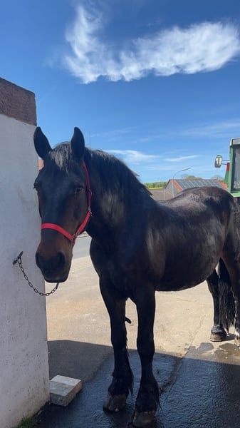 Süddeutsche Kaltblutstute, geboren 2006, ca. 165 cm Stockmaß, seit mehreren Jahren in unserem Besitz. Sie wurde zweispännig gefahren und freizeitmäßig geritten. Im Umgang ist sie brav, menschenbezogen sowie schmiede- und verladefromm. Mit entsprechendem Vertrauen in den Reiter geht sie auch alleine ins Gelände. Unter dem Sattel sowie in der Bodenarbeit ist sie nicht für Anfänger geeignet, da sie eine klare, sichere Führung benötigt. Vor der Kutsche zeigt sie sich hingegen sehr fleißig, zuverlässig und entspannt. Sie kennt den Straßenverkehr sowohl in der Stadt als auch auf dem Land und bleibt dabei gelassen und unerschrocken. Trotz ihres Alters von 20 Jahren ist sie fit und gut in Form. Es sind keine Krankheiten bekannt. Aufgrund von Bestandsauflösung abzugeben. Auf Wunsch kann sie inklusive passendem Kutschgeschirr übernommen werden. Ein Kennenlernen und Probeschauen ist jederzeit nach Absprache möglich. Nur in gute Hände abzugeben. Platz vor Preis.
