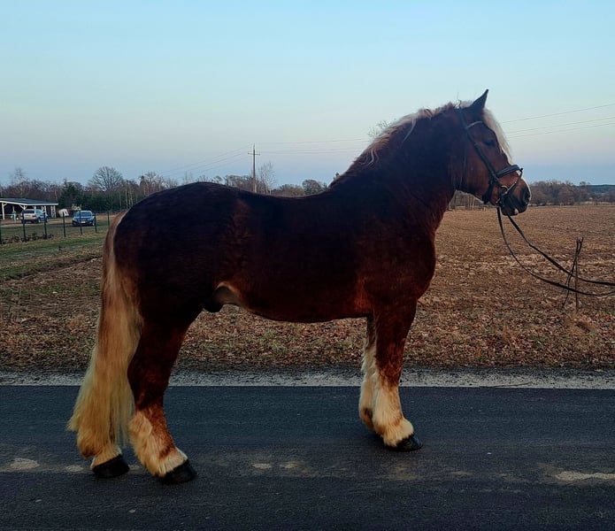 🥰💗 Paard uit sprookje! Met een droomkarakter. Met een prachtige Kaltblutruin in een speciale kleur!!! Lucky is ongeveer 4 jaar oud. Ongeveer 1,60 m. Ras: Pools Kaltbloed Perfect als familiepaard / buitenrittenpaard / therapiepaard. Loopt perfect aan de wagen. Ook door de stad. Is straatveilig. Onder zadel gaat hij in alle drie de gangarten, hij gaat solo het terrein in. Kent longeerwerk, wandelt graag. Lucky vindt kinderen leuk – borstelen en leiden is geen probleem. Hij is absoluut een droompaard voor kinderen en volwassenen. In omgang is hij makkelijk. Hij is fit, gezond, zonder mankementen. Geschikt voor open stallen, herdverträglich. Video’s beschikbaar. Transport mogelijk. Locatie: Lausitz, nabij Görlitz
