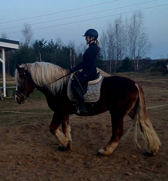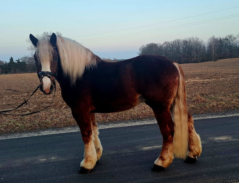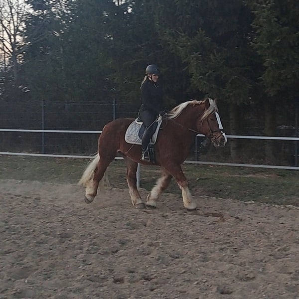 🥰💗 Fairy-tale horse! With a dreamlike character. Beautiful chestnut gelding in a special color!!! Lucky, approximately 4 years old about 1.60 m (16.1 hh) Breed: Polish Coldblood Perfect as a family horse / trail riding horse / therapy horse. Rides perfectly in harness, including through the city. Street-safe. Under saddle, he is trained in all three gaits and rides alone in the terrain. He knows lunging and enjoys going for walks. Lucky loves children—grooming and leading are no problem. Absolutely a dream horse for children and adults alike. Easy to handle in the herd. He is fit, healthy, and sound with no vices. Suitable for open stable keeping, herd-compatible. Videos available. Transport possible. Location: Lusatia, near Görlitz