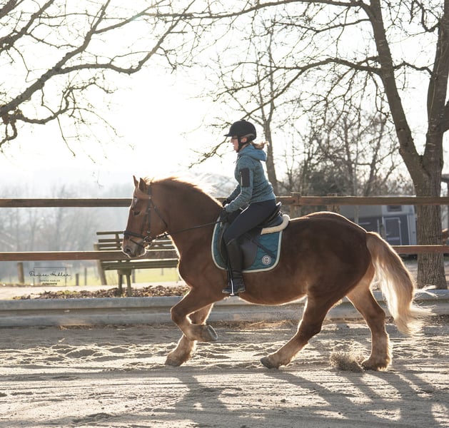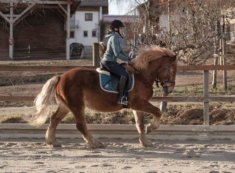 Zum Verkauf steht ein 7-jähriger polnischer Kaltblut-Mix mit durchaus viel Go und Arbeitsfreude. Er ist in allen drei Grundgangarten geritten – sowohl in der Halle als auch auf dem Sandplatz. Dabei zeigt er sich zuverlässig, egal ob alleine oder mit mehren Pferden. Im Gelände waren wir noch nicht so viel unterwegs aber die kurzen Strecken waren ebenfalls keine Probleme. Unter dem Sattel ist er brav und ehrlich, zeigt keinerlei Unarten wie Buckeln, Steigen oder Durchgehen. Dennoch ist er kein Anfängerpferd, da er sowohl im täglichen Umgang als auch beim Reiten anfangs gerne testet und eine konsequente, ruhige Hand benötigt. Bei klarer Führung entwickelt er sich zu einem motivierten und angenehmen Partner, der Freude an der Arbeit hat. Bei uns steht er momentan mit Wallachen im Offenstall. Diese oder ähnliche Haltung würden wir uns auch wieder für ihn wünschen. Stuten stehen nebendran, interessieren ihn bisher nicht. Zähne wurden vor ein paar Monaten gemacht. Reitvideos können gerne versendet werden. Bei Fragen einfach melden.