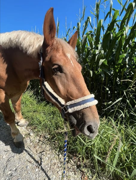 Hello, With a heavy heart, I am offering my Polish Cold Blood mix as a companion horse only (more details to be discussed personally). I am listing him as not suitable for riding. The only activities that might be possible are groundwork, free movement, or walks. He was backed by the previous owner. He is pain-free, robust, herd-friendly (including mixed herds), familiar with box and open stall housing, and is barefoot. He has no bad habits and is very easy to handle, making him a very pleasant horse to be around. Space takes priority over price.