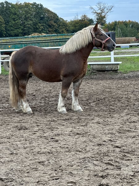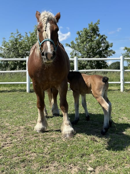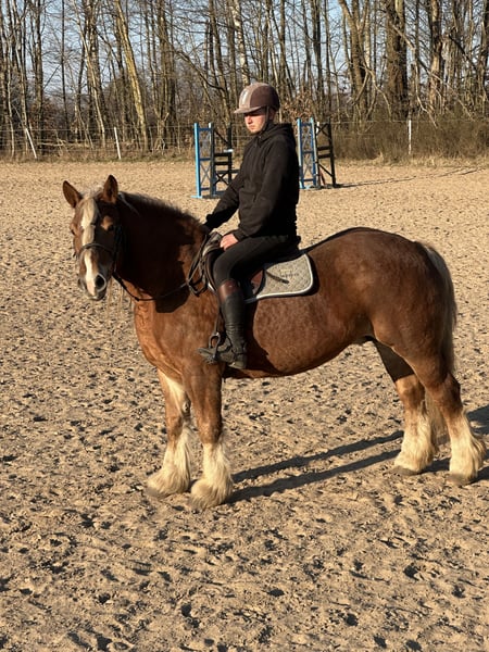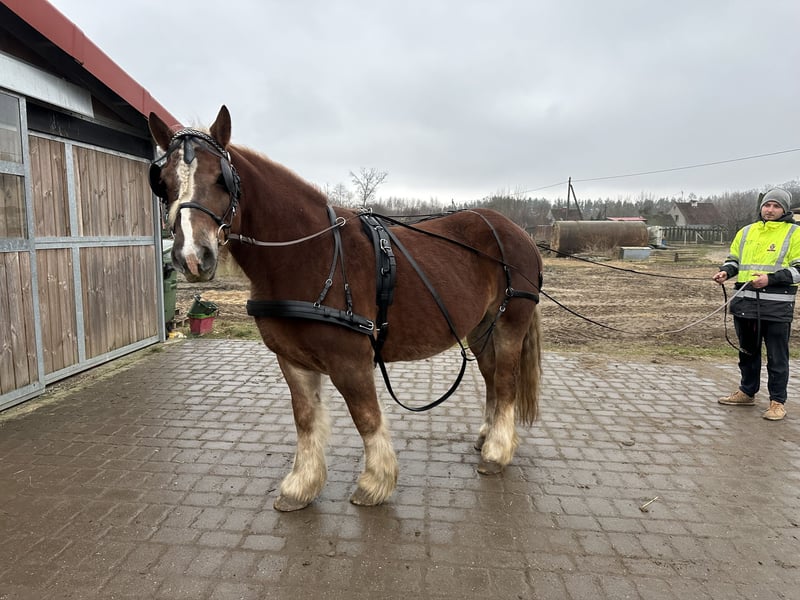 Witam. Posiadam na sprzedaż bardzo ładną i poprawną klacz zimnokrwistą, która ma na imię Rysia. W obejściu jest bardzo grzeczna, nie gryzie, nie kopie, obsługiwana i prowadzana przez dzieci. Uwielbia zabiegi pielęgnacyjne, a w szczególności czesanie długiej grzywy. Codziennie wychodzi na padok wraz ze stadem. Nie jest uległa, ale też nie szuka zaczepki. Bardzo ładnie daje na siebie wsiadać. Chodzi pod siodłem ale nie nadaje się dla wszystkich.Jak to klacz, potrafi pokazać rożki. Zdarzy jej się bryknąć, kwiknąć i zbuntować. W terenie za to jest bomboodporna. Nie płoszy się i nie boi. Może iść jako czołowa jak i zamykać zastęp. Zakładaliśmy jej szorki, ciągała oponę na placu. Nie zaprzęgaliśmy jej, ponieważ nie mieliśmy odpowiedniej bryczki. Jest to bardzo dobra matka hodowlana. Dała źrebięta, które zostały czempionami oraz zdobywały bardzo dobre lokaty. Jest to koń doinwestowany. Ma wszystkie szczepienia, jest odrobaczana. Zna kowala (robiona w klatce przez swoje gabaryty). Miała robione zęby. Nie kaszle, nie choruje, nie kolkuje. Weterynarza widzi tylko na rutynowych kontrolach. Myślę, że idealnie sprawdzi się w dalszej hodowli lub dla kogoś, kto chciałby z nią popracować. Sprzedam tylko w dobre i odpowiedzialne ręce z powodu braku jeźdźca i zajęcia dla niej u nas. Po więcej informacji zapraszam prywatnie.