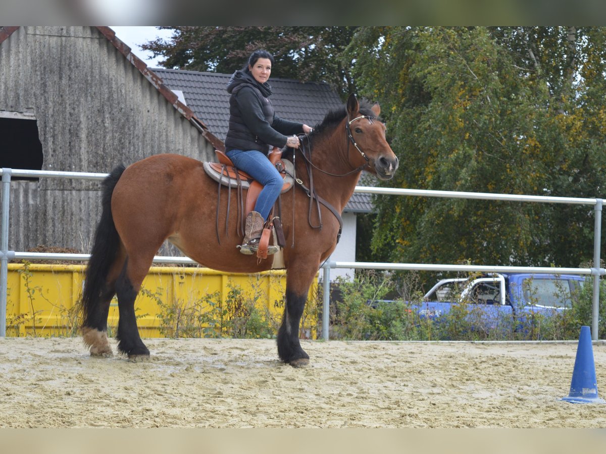 Aus Zeitgründen haben wir uns dazu entschlossen unsere 11 jährige poln. Kaltblutstute Momo zu verkaufen. Momo ist eine unglaublich liebe, aufgeschlossene, ehrliche und unverbrauchte Stute. Trotzdem ist sie kein Anfänger Pferd. Wir geben sie nur in Kaltbluterfahrene Hände und in das beste zu Hause ab. Bei uns steht sie in einem Offenstall mit einem älteren Wallach zusammen. Boxenhaltung kommt für sie nicht infrage. Sie ist verträglich mit anderen Pferden und trotzdem Ranghoch. Momo ist jetzt seit 6 Jahren bei uns und wir haben sie mit viel Geduld, langsam und ehrlich ausgebildet. Sie hat an allem Spaß und macht alles brav mit, solange der Mensch der sie führt weiß was er tut und ihr die Sicherheit gibt die sie braucht. Ansonsten entscheidet sie selbst. Alleine Ausreiten oder in der Gruppe ist überhaupt kein Problem. Die Arbeit auf dem Platz macht ihr nicht ganz so viel Spaß. Macht sie aber trotzdem gut mit. Wir bringen viel Abwechslung in ihr Training. Equikinetic, klassische Handarbeit, gymnastizierende gerittene Einheiten, Trailparkur kennt sie alles. Auf dem Platz arbeiten wir sie überwiegend im Schritt um ihre Gelenke zu schonen und ihr die Grundlagen ihrer Balance zu vermitteln. Im Gelände ist sie flott unterwegs. Zum Kutschefahren eignet sie sich nicht, da hat sie wohl schlechte Erfahrung gemacht. Momo ist eine tolle Stute die wirklich Spaß macht. Sie eignet sich hervorragend als Wanderreitpferd. Leider haben wir nicht die Zeit ihr gerecht zu werden und da sie leichtfuttrig ist und wir ihr nicht die Bewegung und Aufmerksamkeit geben können, die sie braucht und verdient, suchen wir auf diesem Weg ein neues zu Hause für sie. Es handelt sich nicht um einen Notverkauf. Wir geben sie nur ab wenn es zu 100% passt. Dabei steht uns das wohl des Pferdes an erster Stelle. Wir verkaufen sie nicht an Händler, Schul,- und oder Reitbetriebe, sondern an einen Menschen der sie, wie wir, über alles liebt und nur das Beste für sie möchte. Eckdaten: Name: Gestia Rufname Momo Rasse: polnisches Kaltblut Geschlecht: Stute Größe: 155cm Gewicht: 700kg Alter: 11 (April 2015) Preis: 6900€ Standort: 57635 Oberirsen Geimpft, entwurmt, gechipt, regelmäßig dem Zahnarzt vorgestellt, regelmäßig Physiotherapeutisch und Osteopthisch behandelt, lässt sich super verladen, Mega brav bei der Hufbearbeitung, Barhuf im Gelände mit Hufschuhen/Temporär beklebt, Gesund, hatte im letzten Jahr einen starken Milbenbefall der jedoch behoben ist, Mähne und Schweif müssen noch weiter nachwachsen, kann aufgrund ihrer Leichfuttrigkeit nicht 24 Stunden auf der Weide stehen, am besten gar keine Weide, wird nur in Offenstallhaltung abgegeben, muss weiterhin noch abnehmen. Momo hat einen Maßsattel. Dieser kann mit Zubehör für 3300€ übernommen werden. Bei ernsthaftem Interesse, freuen wir uns wenn Du Kontakt zu uns aufnimmst. Herzliche Grüße Steffi und Andrea Muß Kontakt: Steffi Muß 0151/28746390