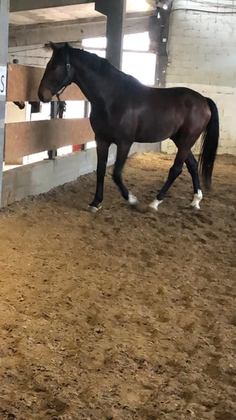 **Horse Sale Advertisement** For sale: a stunning gelding, born in 2021. This magnificent dark bay specimen stands 172 cm at the withers and has an excellent conformation. Ideal for those looking for a partner for jumping, our horse has a great temperament and a natural predisposition for equestrian disciplines. For more information or to arrange a visit, please do not hesitate to contact us. This horse represents a unique opportunity for riders of all levels!