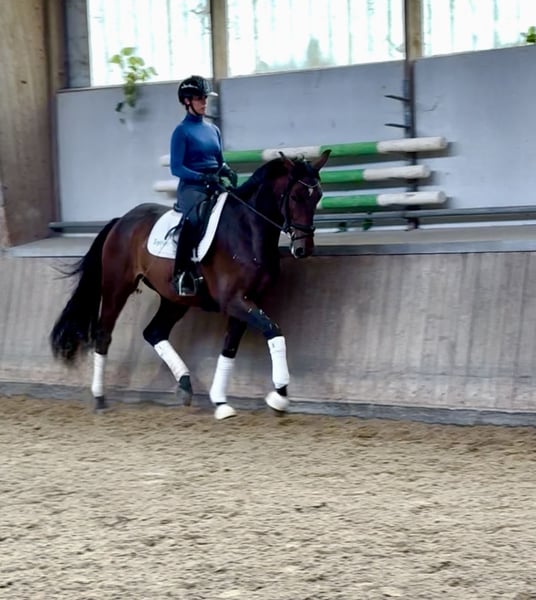 Stunning 4-year-old gelding by L’Arc de Triomphe out of Tenerife VDL. This promising young horse has been under saddle for just 3 months and already impresses with three quality gaits – highlighted by an outstanding walk!!! He combines a wonderful temperament with a sweet, willing character, making him easy to handle both on the ground and in the saddle. Standing at 1.77 m, he is a tall horse, offering a comfortable seat even for riders of smaller build. As shown in the video, the rider is only 1.65 m tall – proof of his excellent rideability and manageability. With his scope, temperament, and rideability, Le Roix Triomphant is a horse with a very bright future. ✅ X-rays available on request. 💶 A trial fee of €50 is required to discourage equestrian tourism and ensure only genuinely interested buyers come to try him. 📍 Located in Germany, on the Swiss border. 📩 info@daniadressage.com for more information
