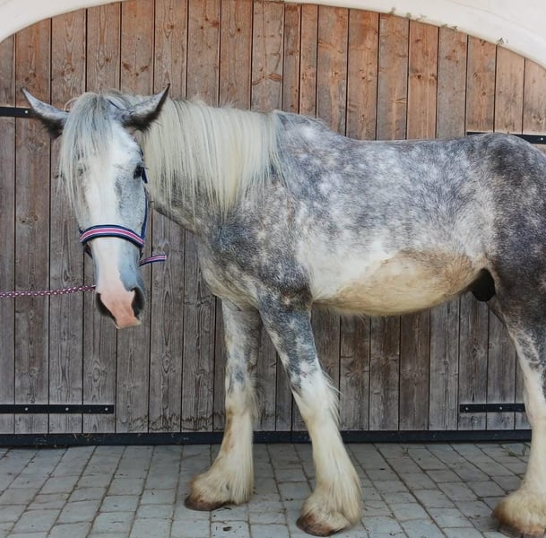 Numero Due urodził się na wiosnę 2022 roku i jest wyjątkowym młodym wałachem rasy Shire Horse. Pochodzi z naszej własnej hodowli i od urodzenia był otaczany dużą troską i miłością. Oba jego rodzice wyróżniają się przyjaznym, zrównoważonym charakterem – i właśnie te cechy odzwierciedla również Numero Due. Jest niezwykle przywiązany do ludzi i czuły, aktywnie poszukuje kontaktu, chętnie przyjmuje głaskanie i uwielbia spacery. Ponadto jest ciekawy świata, otwarty i chętny do poznawania nowości. Wychował się w mieszanej grupie na rozległych pastwiskach, co zapewniło mu dobre umiejętności społeczne i równowagę emocjonalną. Niestety, u Numero Due zdiagnozowano dysplazję stawu śródstawowego. Dla niewtajemniczonych: polega to na obniżeniu stawu nadkłykciowego – obszaru powyżej kopyta – co powoduje, że jego kończyna jest nieco bardziej miękka w osi kończyny, przez co nie nadaje się do jazdy. Mimo tej szczególnej cechy, porusza się w stadzie płynnie i nie wykazuje żadnych ograniczeń w codziennym życiu. Ze względu na tę specyficzną wadę zdrowotną, Numero Due jest oferowany znacznie poniżej swojej wartości rynkowej – zamiast 5900 € cena wynosi 2500 €. Szukamy dla niego domu u ludzi, którzy docenią jego czuły charakter i zapewnią mu spokojne, stabilne życie jako koń towarzyszący lub podopieczny. Uwielbia towarzystwo innych koni, jest społeczny, lubi się bawić, jest łatwy w obsłudze i obdarza swoich opiekunów pełnym zaufaniem. Dla osoby, która chce mieć przy boku drugiego lub trzeciego konia jako przyjaciela, Numero Due będzie idealny. Doskonale nadaje się również dla osób szukających konia do „kochania”, spacerów czy jako koń do towarzystwa – według weterynarza ruch jest dla niego szczególnie korzystny. Numero Due jest prowadzi się na halterze, zna stanowisko do czyszczenia, pielęgnację kopyt i ma już pierwsze pozytywne doświadczenia z przewozem w przyczepie. Podczas wizyt u weterynarza i kowala zachowuje się spokojnie i bezproblemowo. Nie kuleje i w grupie zachowuje się wzorowo. W stadzie jest pełen energii i ciekawości – dlatego nie jest odpowiedni jako koń towarzyszący starszym koniom, ale świetnie sprawdzi się jako kompan dla młodszych lub równie aktywnych zwierząt. Możemy go także wyobrazić sobie jako towarzysza dla spokojnego, nie dominującego ogiera. Chcielibyśmy podkreślić, że nie jest to sprzedaż w nagłym przypadku. Numero Due może pozostać u nas do czasu znalezienia odpowiedniego domu. Zależy nam, aby był tam doceniany takim, jakim jest – jako kochający, nie jeżdżący koń towarzyszący, z dużym sercem i łagodnym usposobieniem. Dla nas liczy się raczej miejsce niż cena, dlatego chętnie otrzymamy krótkie opisanie przyszłego domu. Numer Due mieszka obecnie w pobliżu Ried im Innkreis. Na życzenie chętnie prześlemy dodatkowe informacje, zdjęcia lub filmy oraz umówimy się na spotkanie. Jeśli chcesz podarować młodemu, kochanemu wałachowi Shire Horse z wyjątkową historią nowy dom, Numero Due będzie wiernym towarzyszem na długie lata.