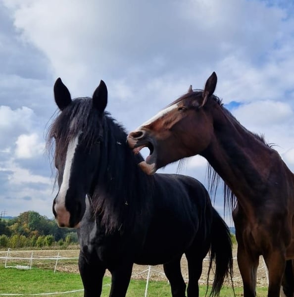Vendesi stallone Shire – Perfetto compagno per il tempo libero È disponibile un impressionante stallone Shire, nato nel 2022. Con un'altezza al garrese di 182 cm, è un vero spettacolo e si distingue per la sua natura calma e amichevole. Il gigante castano è ideale per il tempo libero e si distingue per la sua tranquillità e il temperamento piacevole. Per ulteriori informazioni e interessati, sono a vostra disposizione. Venite a scoprire di persona questo cavallo unico!