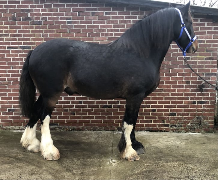 5-year-old Shire Horse gelding seeking a 5-star home. Scofield is a sensitive and attentive horse. His joy in movement and love for human contact make him an excellent leisure partner. Loading and farrier visits are no problem. He is familiar with ground work and accepts saddle and bridle easily. He has no health issues. Scofield was bred on the farm and is kept in an open stable. He gets along well with both geldings and mares. Color: dark bay Height: approximately 17.1 hh Interested? Please contact us by phone or WhatsApp: 01788355986
