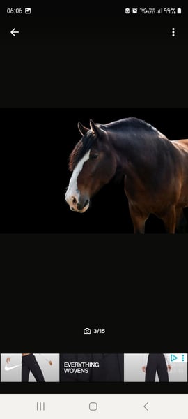Here is my 9-year-old Shire Horse gelding, Marlow, for sale. Registered Name: Emma's Marlow. Age: Born on April 11, 2016. 9 years old. Height: Approximately 16.2 hh. Ridden in all three gaits for leisure riding. Handles well in the arena, in the indoor riding hall, and in the field. Rides comfortably both in a group and alone in the terrain. A big cuddle bug who is always very calm, sensible, and easy to handle. Works on the longe and double longe and is familiar with ground work. Regularly vaccinated, dewormed, with biannual osteopathic check-ups, annual dental care, and routine saddle checks. Knows herds both consisting solely of geldings and mixed herds with mares and geldings. Good with the farrier, veterinarian, and trailer loading. Kept in an open stable system and only knows this type of housing. Sold with all accessories (saddle, girth, lunging equipment, bridle, halter, grooming tools, cooler, etc.). Only sold in an open stable system. No installment payments! Price is not negotiable! To prevent tourism riding, a trial ride fee of €50 is charged. This amount will be deducted from the purchase price.