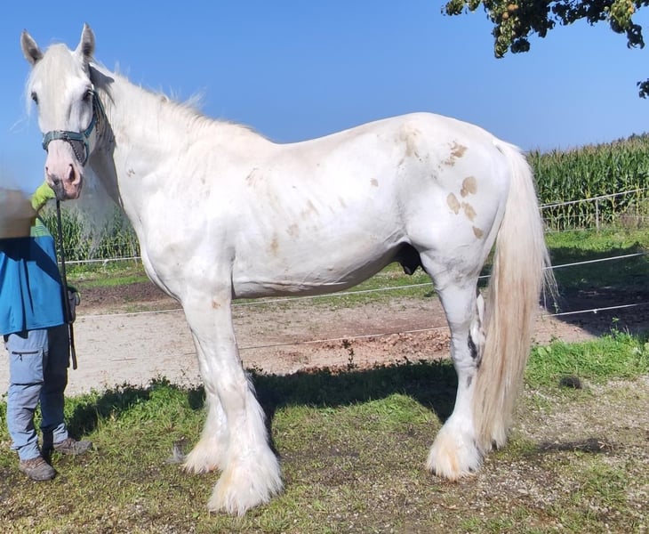 Elegant Shire Horse Stallion for Sale – Perfect for Leisure and Hobby Riding We are offering an impressive Shire Horse stallion, born in 2016. This magnificent grey impresses with his imposing stature and calm, friendly demeanor. Standing at 180 cm, he is a true eye-catcher and ideally suited for recreational riding. The stallion is healthy, alert, and well-trained. He is extremely gentle in handling and easy to manage both in the field and in stable routines. His calm nature makes him an excellent partner for experienced riders as well as ambitious beginners seeking a reliable leisure horse. Please feel free to contact me for more information or if you are interested. Viewing and trial riding are available by appointment.