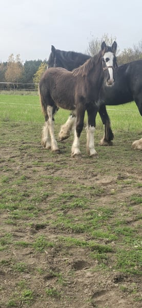 I am proud to offer for sale a Shire foal from a proven, reputable breeding line. Breed: Shire Gender: Colt Date of Birth: May 22, 2025 Color: Buckskin / Dappled Buckskin Sire: AGARES R-Elvis – a stallion with an impressive build, excellent movement, and a gentle temperament, highly valued in breeding for passing on harmony and strength to his offspring. Dam: Clones Seaside Ruby – a mare with an outstanding pedigree, known for her elegance, correct conformation, and stable, balanced character. The foal has been surrounded by care and professional attention from the first days, raised in calm conditions, socialized, and accustomed to human presence and basic grooming routines. - Perfect material for carriage, show, recreational, and breeding purposes. - Pedigree available for review – full documentation on hand. - The foal can be viewed in Obrąb. - For more information, please contact us by phone or private message.