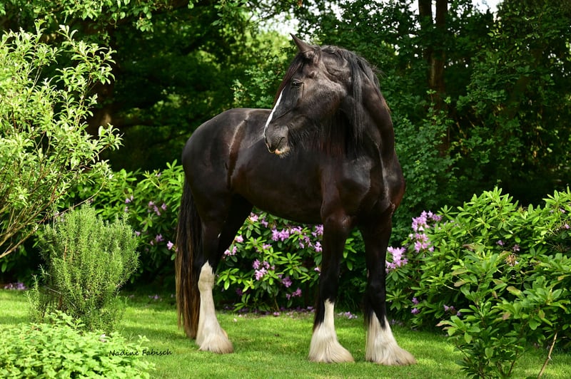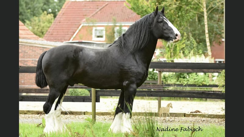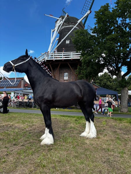 For sale is Wieswood Aragorn, born in April 2025. Not only is he a true gem in terms of character, but he is also very promising for breeding purposes. S. lineage. Estimated final height: over 190 cm. He will receive full and recognized SHS registration papers. Vaccinated and dewormed. Images 1-3: Current photos Image 4: Aragorn at 5 days old Image 5: Sire, Middle Meadow Morgan Image 6: Dam, Berrybrooks Duchess, 5 years old, over 190 cm 2024 Ostfriesland State Breeding Show, Champion Mare Class 5-year-olds Image 7: Sire’s sire, Cae Mawr Aristocrat Image 8: Dam’s dam, Middle Meadow Crystal Images 9-10: Full sister of the dam, Tide’s Mother of Dragons, 4 years old 2023 Ostfriesland State Breeding Show Champion Mare 2-year-olds Best Shire Horse bred in Germany 2023 2024 Ostfriesland State Breeding Show Champion Mare 3-year-olds Champion Mare of all classes 2024 Best Shire Horse bred in Germany 2024 2025 Federal Breeding Show Wickrath Champion Mare 4-year-olds