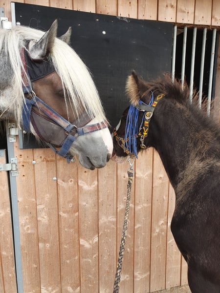Bartelshoeve Eros is a sweet, playful, and social Shire foal. He is raised with other horses and is accustomed to being outside as well as being stabled indoors. He has a beautiful black coat with 3.5 white legs and a distinctive blaze. Eros is vaccinated, dewormed, and has received farrier care. His pedigree includes Earl Stables Casanova x Bartelshoeve Jolien, representing a refined and pure bloodline, which also makes him an interesting prospect for future breeding. He holds a Shire passport registered with the British studbook. We are looking for a forever loving and serious home for this adorable boy. If you are genuinely interested, please contact Liselot Deurloo at avanvossen77@gmail.com or via WhatsApp at 06-42081233.