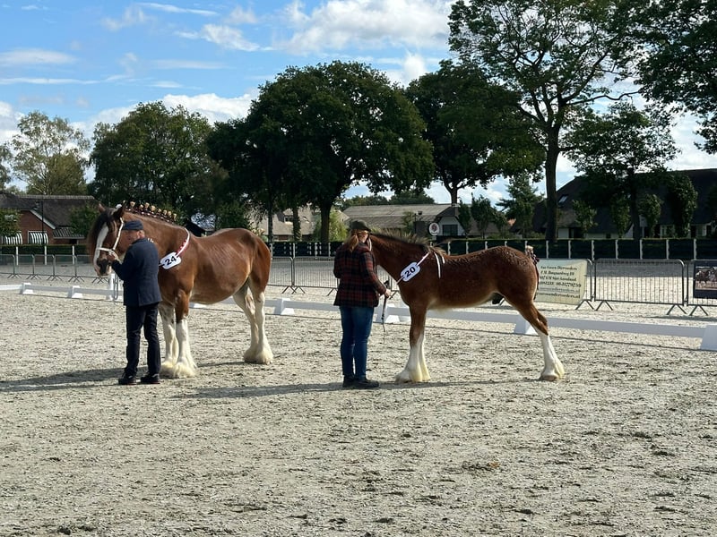 FOAL CHAMPION from Germany for sale Zanna's Stable William. He is bay with 4 white legs and has an official Shire passport registered with the SHS and studbook. Last weekend (September 6), he became the foal champion of Germany during the German Shirehorse Show in Wickrath. The jury was very complimentary about him. Shire is Middle Meadow Morgan and the dam is Westfield Party Girl. She placed first in the broodmare class. William is a lively and affectionate foal, born on March 19, and is currently being weaned. By arrangement, he can soon move to a new home.
