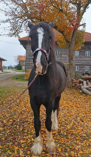 Loving Shire Horse Mare – Ideal for Leisure and Pleasure For sale is a stunning and elegant Shire Horse mare, born in 2015. Standing at an impressive 17.6 hands and with her shiny black coat, she is a real eye-catcher. This calm and friendly mare is perfect for recreational riding and impresses with her gentle nature and composure. She is well-trained, reliable in handling, and suitable for both experienced riders and beginners looking for a special horse. The mare is healthy, regularly vaccinated, and enjoys cuddling in her free time. If you are interested or require further information, please feel free to contact me. A personal meeting is always possible.