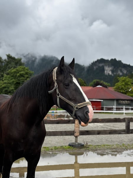 Die bildschöne, 10-jährige Shire-Horse-Stute Sapphire (Stockmaß: 191 cm) fand im Sommer den Weg zu uns in die Pferdeklappe. In den vergangenen Monaten konnte sich die sanfte Riesin gut bei uns einleben und ist nun bereit für ihr „Für-immer-Zuhause“. Sapphire ist eine sehr sanfte, menschenbezogene Stute, die mit ihrer stattlichen Erscheinung und ihrem außergewöhnlich lieben Wesen sofort die Herzen berührt. Sie ist überaus feinfühlig, zeigt sich meist ruhig und gelassen, kann manchmal aber auch ein wenig dickköpfig sein. Sapphire schätzt klare Strukturen, liebt lange Spaziergänge und ist auch bei der Bodenarbeit immer mit Eifer bei der Sache. Auch unterm Sattel ist die liebe Stute überaus brav und fein und möchte einfach nur gefallen. Was Sapphire nicht so gern mag, ist, am Kopf angefasst zu werden; auch das Aufzäumen fällt ihr nicht immer leicht, weshalb ein einfühlsamer Umgang besonders wichtig ist. Aufgrund vorhandener Knorpelverknöcherungen und Arthrose benötigt Sapphire regelmäßige Bewegung sowie gezielten Muskelaufbau. Sie ist derzeit beschwerdefrei und hat keinerlei Schmerzen. Rassebedingt hat sie leider immer wieder mit Mauke zu kämpfen, die eine konsequente Pflege mit regelmäßiger Behandlung erfordert. In den warmen Monaten kämpft Sapphire mit einem Sommerekzem, daher wäre ein höher gelegener Stall ohne stehendes Gewässer und ohne Obstbäume ideal. Sapphire ist vollständig geimpft und gechippt und wünscht sich in ihrem neuen Zuhause einen Offenstall oder eine Nachtbox mit täglichem Weidegang. Sie fühlt sich in der Herde wohl und ist mit Stuten sowie Wallachen verträglich.