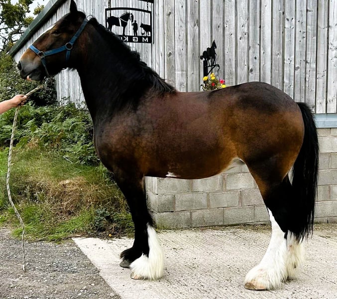 This lovely mare has bred several very good foals and should breed again. She is nice and easy to manage and very friendly. Beautiful long mane and tail. Well bred. Fully registered with The Shire Horse Society UK www.shiresandclydesdales.com UK and worldwide Whatsapp 0044 7919 605350 0044 1606 883869 Transport arranged. Visitors welcome to view our horses here in the UK