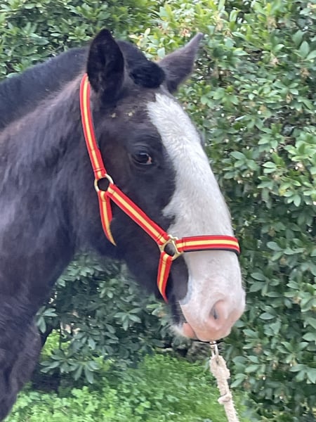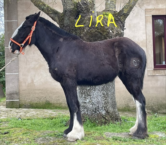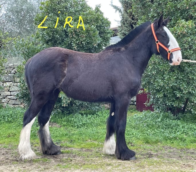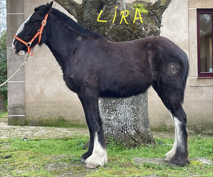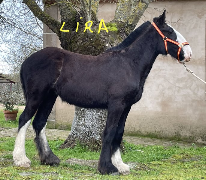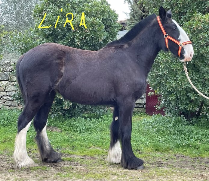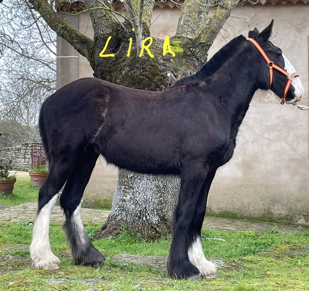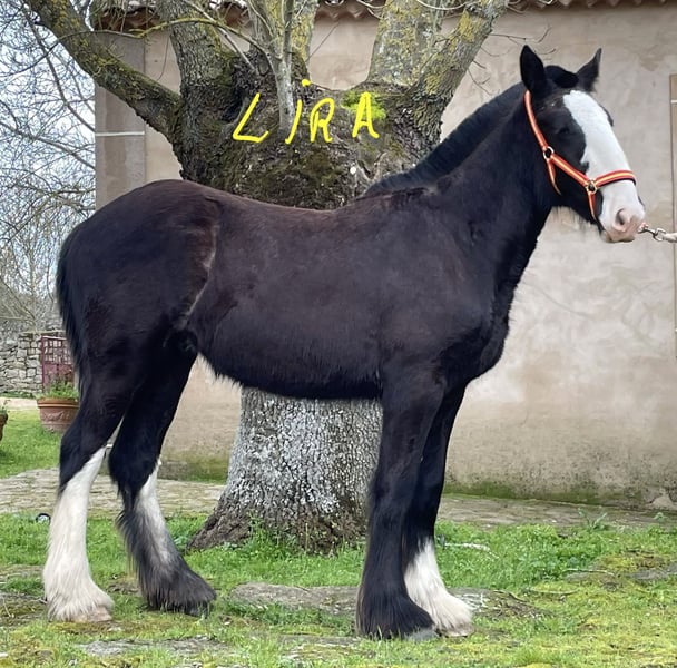 **Shire Horse mare for sale** We are pleased to offer a beautiful and promising Shire mare, born in 2025. This elegant black mare stands at 155 cm, making her a well-proportioned and versatile horse suitable for a variety of disciplines. Her calm and friendly temperament, combined with her impressive size, makes her an excellent choice for both leisure riding and breeding purposes. Her strong build and classic Shire conformation are complemented by her good manners and willingness under saddle. She has been well-handled and is accustomed to basic groundwork, making her a reliable partner for experienced riders or those looking to develop a future heavy horse. This mare is ideal for those seeking a noble and robust Shire with a good pedigree and a gentle disposition. She is currently in training and ready to continue her education in a new home. For more information or to arrange a viewing, please contact us.