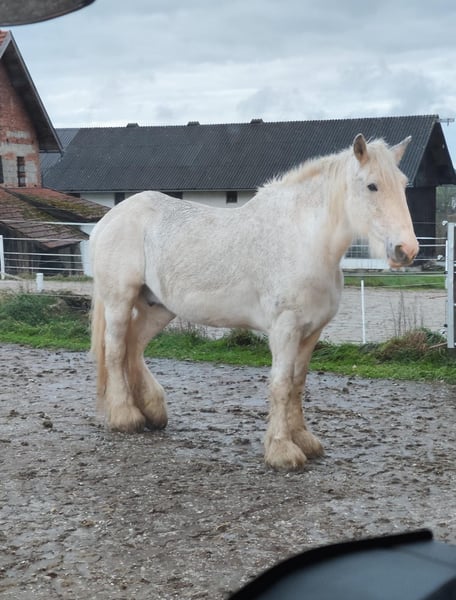 ✨ Elegant Shire Mare – ideal for leisure and enjoyment ✨ For sale is an impressive Shire mare, born in 2002. This beautiful grey mare impresses with her imposing height of 1.80 m, her presence, and her gentle, friendly nature. She is well-trained, calm in handling, and familiar with daily routines on the farm. Whether for relaxed rides, leisurely walks, or simply spending time together in the pasture – she is a reliable and loving companion for those who appreciate a calm, honest horse by their side. Due to her age, she is offered with a health guarantee and at a very favorable price of €900 instead of €5,900. It is important to us that she finds a good, responsible home where she will continue to be lovingly cared for and looked after. She is ideal for horse enthusiasts looking to give a large, experienced Shire horse a wonderful retirement – a horse that enriches everyday life with her calm presence and gentle nature.