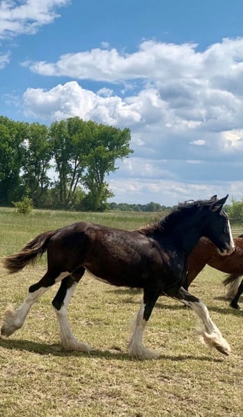 Shire Horse Stute, geb. 2024, aktuell ca. 1,65 m (im Wachstum) – ruhig, neugierig & absolut gelassen Schweren Herzens- Aufgrund veränderter Umstände suche ich für meine junge Shire Horse Stute ein passendes, langfristiges Zuhause. Kein Notverkauf. Sie ist eine sehr ruhige, ausgeglichene und neugierige Stute, die sich durch ihre Gelassenheit besonders hervorhebt. Neue Situationen werden von ihr aufmerksam und interessiert erkundet, ohne dabei hektisch oder panisch zu reagieren. Im Umgang zeigt sie sich freundlich, verschmust und menschenbezogen. Sie genießt Aufmerksamkeit, lässt sich sehr gerne putzen und sucht auch aktiv die Nähe zum Menschen. Für ihr Alter bringt sie bereits viel mit: – kennt Bodenarbeit und erste Gelassenheitsübungen – lässt sich problemlos führen und anbinden – Tierarzt und Hufschmied sind kein Problem – kennt Hunde, Kinder, Autos, verschiedene Umweltreize, Wasser, Plane, Schirm etc. Alleine spazieren gehen ist problemlos möglich. Sie wächst im Herdenverband auf, ist rangniedrig und sehr verträglich. Im Wesen ruhig und eher introvertiert: In unsicheren Situationen bleibt sie zunächst stehen und beobachtet. Mit ruhiger, klarer Führung gewinnt sie schnell Vertrauen und lässt sich sicher durch neue Situationen begleiten. Für ihr Alter sehr gelassen und grundsätzlich auch für Anfänger geeignet – das junge Alter sollte jedoch berücksichtigt werden. Freizeit-, Aufzucht- sowie späteres Reit- oder Fahrpferd. Rappe mit vier weißen Abzeichen an den Beinen und schönem Behang Aufgrund der Größe der Eltern (ca. 1,90 m) ist von entsprechendem Endmaß auszugehen. Transport ist gegen Aufpreis möglich. Zubehör kann ebenfalls gegen Aufpreis übernommen werden. Regelmäßig geimpft, entwurmt und gesundheitlich ohne Befund, Barhuf, Pass vorhanden. Gravel Pit Trudy - Rappe Vater: Gravel Pit Lord Ashby - Rappe Mutter: Gravel Pit Amper - Rappe