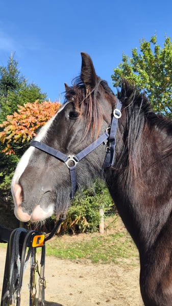 Beautiful Dark Brown Shire Mare – Perfect for Leisure and Pleasure For sale is an impressive Dark Brown Shire Horse mare, born in 2024. Standing at 16.1 hh, she combines powerful elegance with a calm temperament. This affectionate and well-balanced mare is ideal for anyone seeking a reliable leisure horse. Due to swollen joints with suspected chip damage, she is being offered at a significantly reduced price—instead of €5,900, only €900, and exclusively with a protection letter. This price reduction aims to ensure she finds a caring and responsible home where she will receive the necessary attention and care. If you are interested or have further questions, please feel free to contact me. Viewing and trial riding can be arranged by appointment.