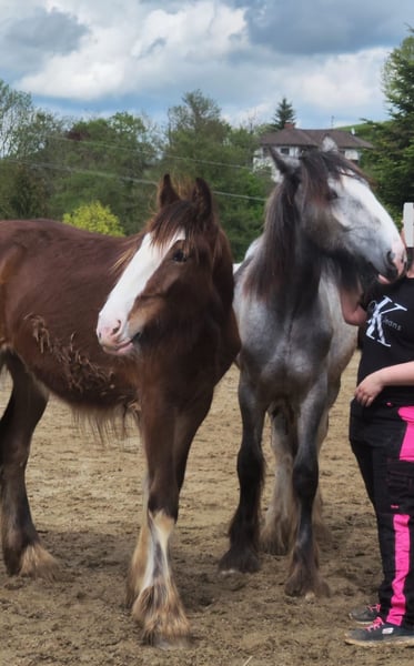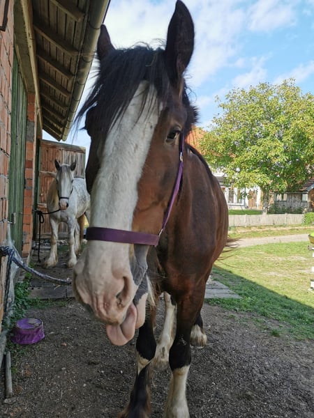 Thank you for your interest in our Shire Horse young mares Daisey, Esmeralda, Gagele and Smiley. Our mares were born in 2022 and are now allowed to move into a species-appropriate, new home with horse company. All of them were born on our farm and grow up together in open stables. As a result, they are well socialized and have so far fit into the group without any problems. In terms of character, Daisey, Esmeralda, Gagele and Smiley couldn't be more different. If you are interested, we will be happy to give detailed descriptions of each of the girls. Of course, they have all the necessary vaccinations and are regularly dewormed. If you are interested, please let us know which qualities are primarily important to you or what plans you have for your future horse. We will be happy to arrange a non-binding appointment afterwards to get to know each other. Our animals are only given into the best hands and an age-appropriate home, so it is important for us to take enough time for interested parties. Since we also raise bottle-fed foals who demand their meals every hour (even at night), we ask for your understanding if the response to inquiries can sometimes take a few (few) days. We look forward to hearing from you.
