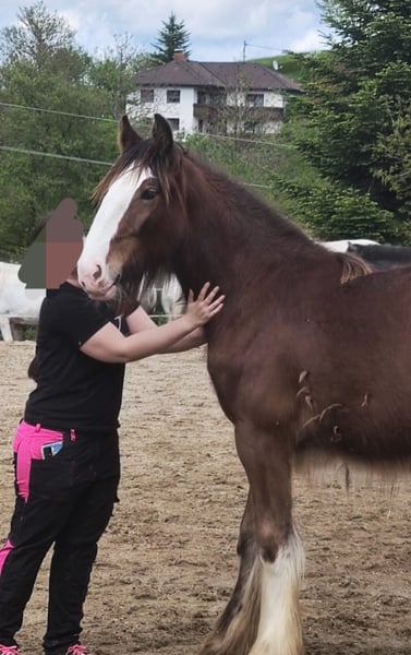 Verkaufe wunderschöne Shire Horse Stute Zum Verkauf steht eine beeindruckende Shire Horse Stute, geboren im Jahr 2022. Sie ist ein elegantes und kräftiges Pferd mit einem edlen braunen Fell und einem Stockmaß von 167 cm. Die Stute ist ideal für Freizeitaktivitäten und begeistert durch ihr freundliches Wesen sowie ihre ruhige Art.