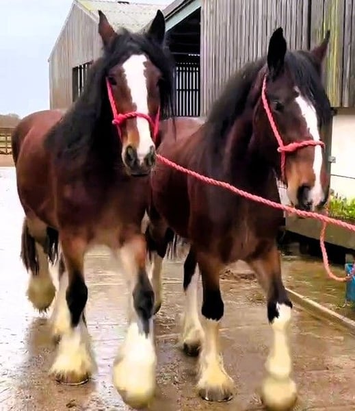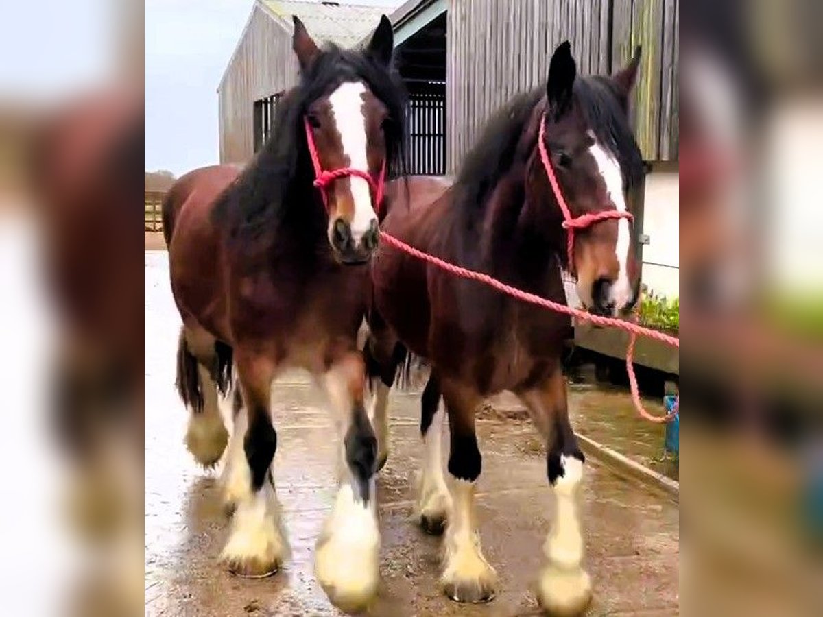 Beautiful Shire mares, half sisters. Well bred, good natures, well handled - fully registered with The Shire Horse Society UK Transport arranged worldwide Visitors to view our horses are welcome - we are mid England. An hour from both Liverpool and Manchester airports and close to motorway connections. Shire and Clydesdale horses from the home of champions. 0044 1660 883869 0044 7919 605350 WhatsApp 0044 7909 932352 - 07909 932352