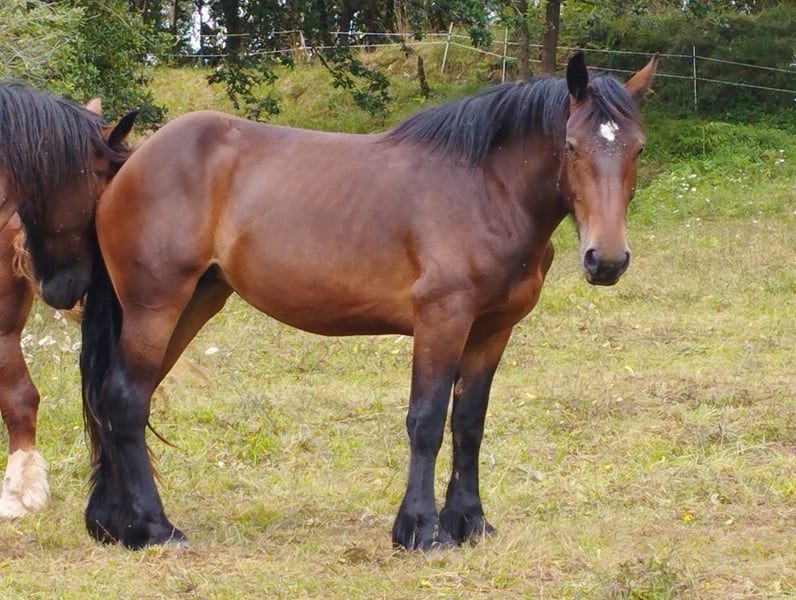 Luna es una perfecta combinación de la altura y las largas piernas de un shire con la fuerza y robustez de un percherón. Es una verdadera belleza. Creció en un grupo de manada estable. Desde hace tres años vive en las regiones montañosas del norte de España, por lo que es muy estable en sus pasos y goza de una salud robusta. Su entrenamiento se realiza en acuerdo con el futuro propietario.