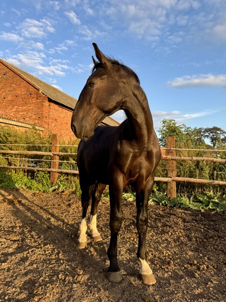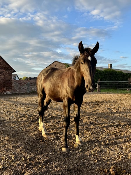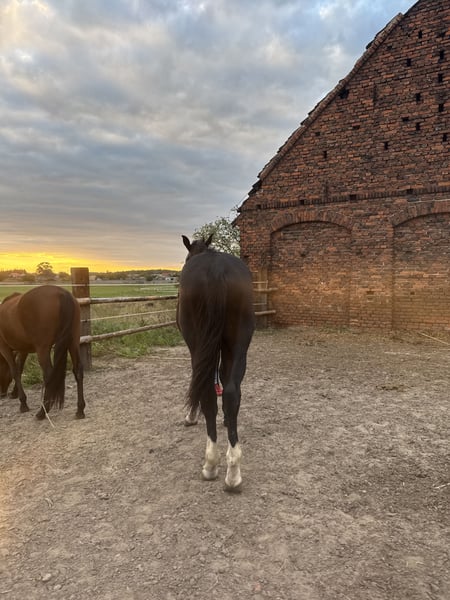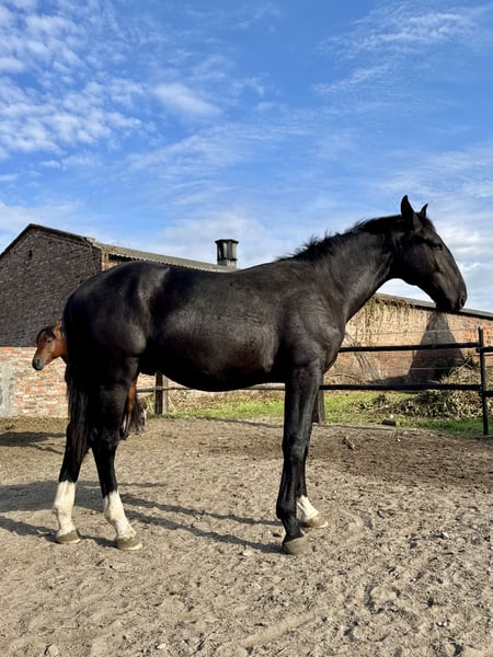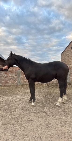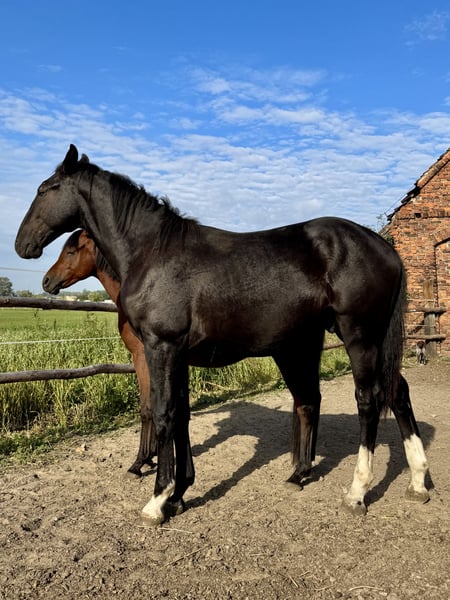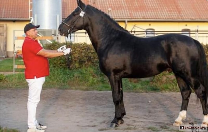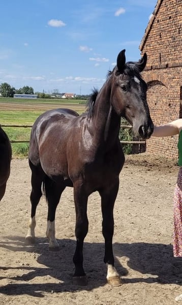 A one-and-a-half-year-old Silesian stallion, born on June 1, 2024. He has a passport with complete Silesian pedigree. Very friendly and curious. Always approaches people in the paddock. Daily paddock time. Beautiful coat – three socks and a star on his forehead. Unique Roman nose. Regularly trimmed. Current height: 156 cm. He will be a large horse. I can send videos via WhatsApp. Father is in the second-to-last photo, mother is in the last photo. Father’s height: 165 cm. Mother’s height: 168 cm.