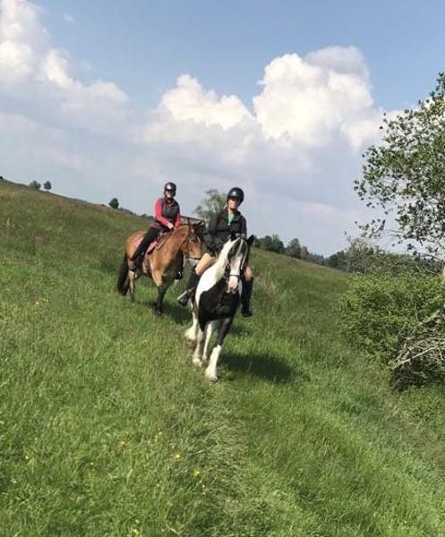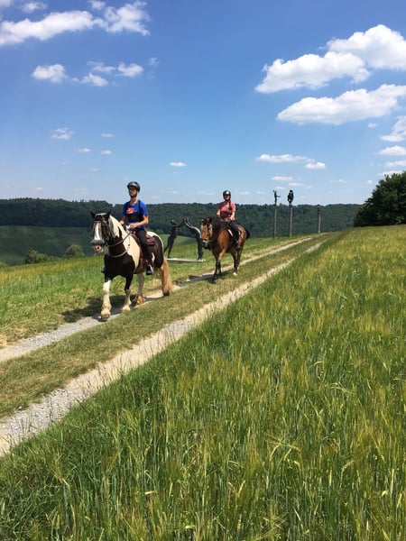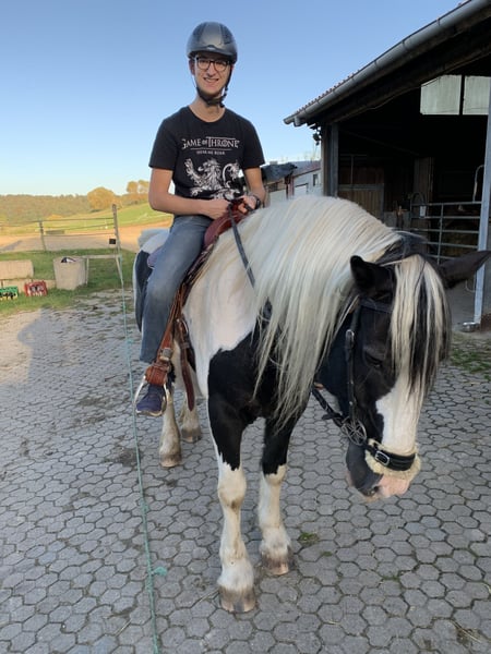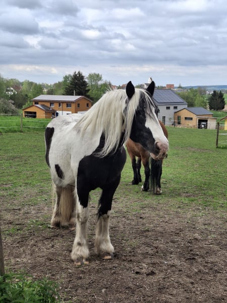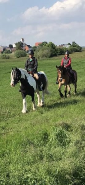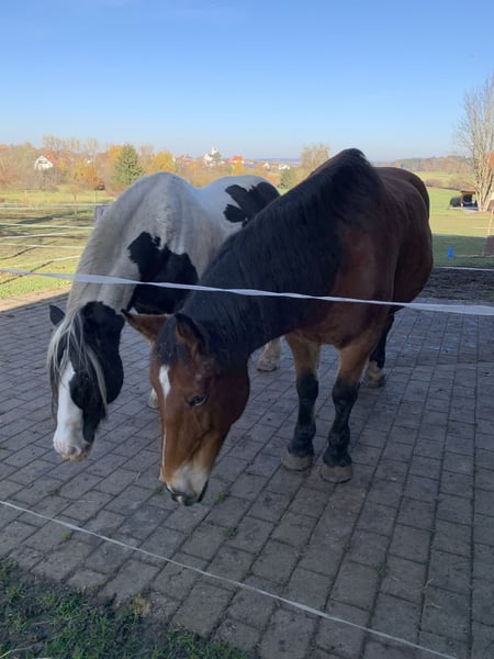 We are selling our two leisure horses. They are only available together. Price per horse includes accessories (matching treeless saddles, bridles, riding pads, blankets, and much more). We have had both horses for 9 years. They have always been healthy and barefoot. They have always been kept in an open stable with 24-hour turnout and hay in paddocks. Our teenage children learned to ride on them, and we always rode in the countryside as a pair. Both have previously been driven in carriages, so they are also suitable for road use. Currently, they have only been kept at our farm for the past 1-2 years, as our children have moved away to study and have given up riding. Therefore, the horses would need some retraining to regain their full potential. They are very people-oriented and are familiar with dogs, chickens, ponies, and donkeys – this has never been an issue. Even our grandchildren have ridden them. They do not bite or kick. Hoof care has been performed every 8 weeks, and they are vaccinated. Age: 16 and 17 years. Height at withers: 161 cm and 163 cm. Videos of lunging available upon request.