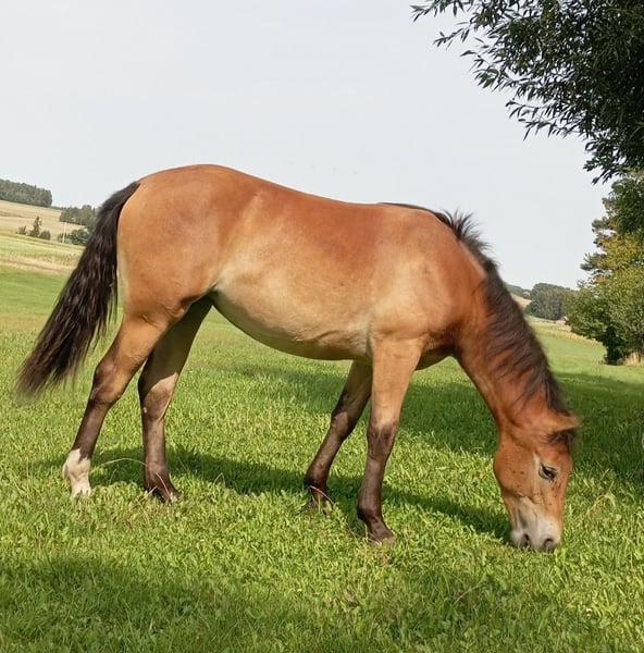 Zum Verkauf steht eine wunderschöne Stute vom Typ Pogrubiany / Śląska Geburtsjahr: 2023 Aktuelle Größe ca. 1,60 m, Endgröße ca. 1,66 m Die Mutter ist vom Typ Pogrubiany Der Vater ist ein Ślązak Sie ist falbfarben mit abgelegten Beinen und trägt eine weiße Socke an einer Vorderhand. Perfekt für Reiter, die Wert auf Tradition und hohe Qualität legen. Die Stute ist bereit für Zucht oder Einsatz. Sie ist an Pflege- und Hufpflege gewöhnt. Gelegentlich zeigt sie etwas Ungeduld. ROHES PFERD Bei Interesse freuen wir uns auf Ihre Kontaktaufnahme!