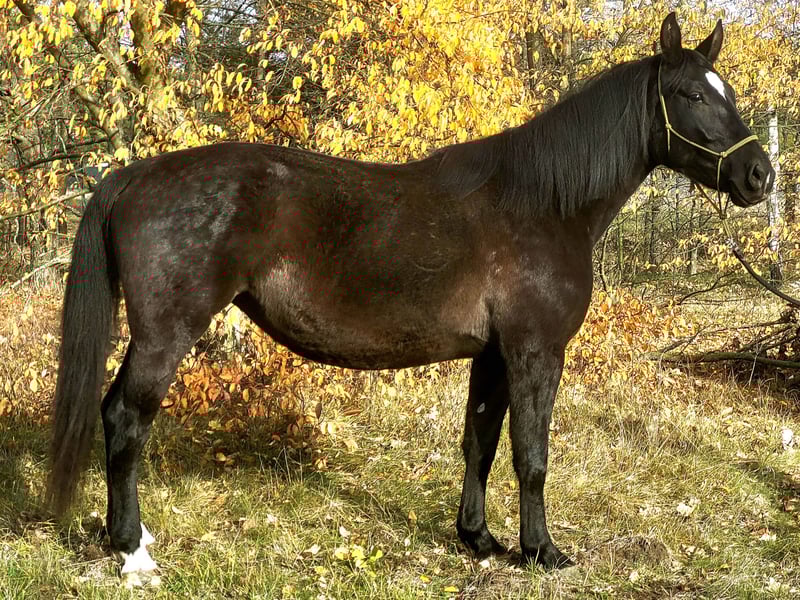 Zum Verkauf steht eine gesunde und gut trainierte vierjährige Schlesier-Stute aus Freilandhaltung. Sie hat eine robuste Konstitution, ist relativ groß für ihre Rasse und misst ca. 168 cm Stockmaß. Sie ist sehr ruhig und freundlich im Umgang, liebt es gestreichelt zu werden. Sie akzeptiert alle Pflegehandlungen – Waschen, Sprühen und Kämmen macht ihr Freude. Sie zeigt sich sehr brav beim Hufauskratzen und wird regelmäßig vom Hufschmied bearbeitet. Die Stute befindet sich in der Vorbereitung für die Arbeit unter dem Sattel. Sie hat bereits den Reiter akzeptiert und bewegt sich unter ihm im Schritt und Trab. Sie kann Bodenarbeit leisten, Übergänge, Rückwärtsrichten, Seitengänge sowie Seitwärtsbewegungen mit Hinter- und Vordergliedmaßen ausführen. Regelmäßig unternimmt sie Spaziergänge an der Hand und zeigt sich im Gelände unerschrocken. Für weitere Informationen sowie Videos vom Reiten und Bewegungsabläufen stehe ich gerne zur Verfügung. Preis: 20.800 zł (Verhandlungsbasis). Interessenten sende ich gern Videos vom Bewegungsablauf und vom Reiten unter dem Sattel. Telefon: 533 500 515