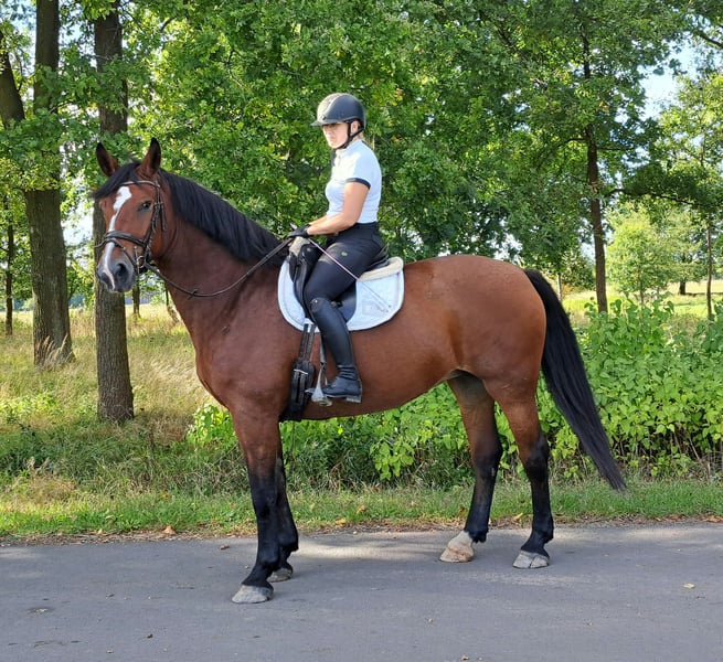 Victoria - Schlesian merrie met volledige afstamming en hoofdregister 7 jaar oud, 1,68 m. Ze is een prachtige Schlesische merrie, geboren in 2018. Met haar elegante kastanjebruine vacht en een stokmaat van 168 cm is ze niet alleen een eyecatcher, maar ook een vriendelijk dressuurpaard. Ze is ook geschikt voor kinderen en absoluut onbevreesd in het terrein. Ze rijdt ook in een koets. Deze merrie onderscheidt zich door haar vriendelijke en open karakter. Ze is goed opgevoed, braaf in de omgang, kent honden en katten. Haar bewegingen zijn soepel en expressief. Een geweldig vrijetijdspaard. De merrie is gezond, hoefbevangen en herdverträglich. Bij interesse of voor verdere vragen sta ik graag tot uw beschikking. Bezichtigingen en proefritten zijn na afspraak mogelijk. Locatie nabij Görlitz.
