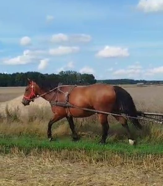 Victoria – Schlesian mare with full pedigree and main studbook 7 years old, 16.8 hh (168 cm) She is a beautiful Schlesian mare, born in 2018. With her elegant chestnut coat and a height of 168 cm, she is not only a striking eye-catcher but also a lovely dressage horse. She is suitable for children and completely fearless outdoors. She also drives in harness. This mare is characterized by her friendly and open nature. Well-behaved, easy to handle, she is familiar with dogs and cats. Her movements are supple and expressive. An excellent leisure horse. The mare is healthy, barefoot, and herd-compatible. If you are interested or have further questions, please feel free to contact me. Viewings and trial rides are possible by arrangement. Location near Görlitz.