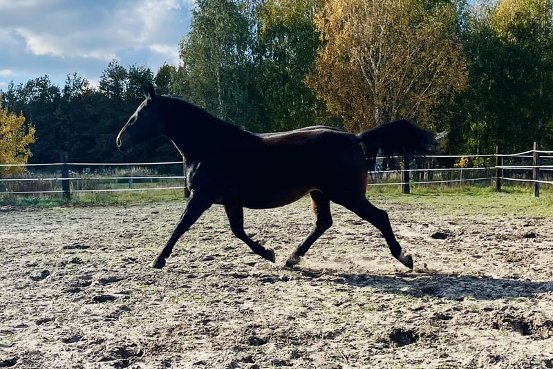 For sale: a beautiful Silesian mare! We present an exceptional Silesian mare born in 2017. She has a stunning dark bay coat and stands approximately 16.9 hh. The horse is friendly and easy to handle, with a gentle temperament. She is currently pregnant by the grey stallion Akropol, sired by Eckermann. Ideal for breeding, recreation, or sport. Please feel free to contact us and arrange a viewing!