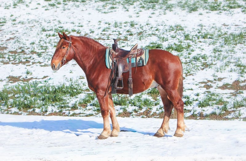 ⚜️𝐓𝐇𝐄 𝓗𝓮𝓻𝓲𝓽𝓪𝓰𝓮 𝐖𝐢𝐧𝐭𝐞𝐫 𝓒𝓵𝓪𝓼𝓼𝓲𝓬⚜️ Happening now thru MONDAY | DECEMBER 29th - Available EXCLUSIVELY on HorseBid's website! For more details and to register visit: www.Horsebid.com CONSIGNOR CONTACT: David Miller 330-275-6771 LOCATION: Millersburg, OH BREED: Suffolk Punch REGISTERED: Yes REGISTERED NAME: MILL RUN KING'S EAGLE COLOR: Red Chestnut HEIGHT: 16.2 AGE: 7 GENDER: Gelding Punchy If you are looking for a unique horse to take in any direction, whether you ride or drive, look no further than Punch! He is a 7 year old, 16.2 hand, registered Suffolk Punch gelding. He is built for comfort in the saddle as well as elegance in the harness. The Suffolk Punch breed is a British breed of draft horse known for its strength, gentle temperament, and distinctive chestnut coat. Punch is truly one of a kind. He is well broke to ride, goes on trails alone or in a group. He is confident going through water, over logs, through brush, as well as down the road. He is also remarkably broke to drive in a cart single as well as double in the team for the whole family. He would be your horse to take a nice stroll tonight, and tomorrow to take the wagon and head out on a wagon train. He also is broke to all farm machinery and knows his job. He is an “in your pocket” type horse and a barn favorite! Punch gets along with other horses and all kinds of animals. He stands well to get clipped, bathed, and for the farrier. He even hauls well in the trailer. There are just too many things to say about the great guy. Whether you want to ride or drive, this boy will do it all, and you’ll enjoy doing it all with him!