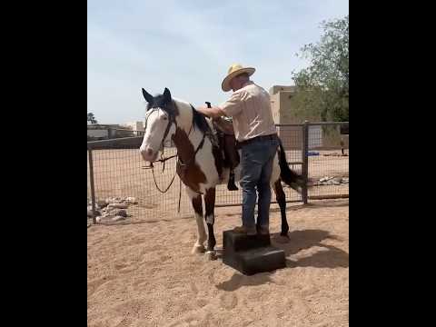 SCF Pride of Moonlight, or JW as we call him, is a 12-year-old going on 13, 16-hand Tennessee Walker. He is very solidly built with a great confirmation. JW is one of the most striking horses I have ever seen and reminds me of a Bev Doolittle painting. JW is a very nice boy and is at the bottom of the pecking order in our stables. I would classify him as a number 3 in terms of temperament. JW excels on long trail rides but could care less for arena work. JW is great for the Ferrer and trailer loads nicely. JW is not a cribber and has never gone lame or had colic. JW has strong bones and great feet. We have never gone down due to poor judgment or lack of strength. I have covered over 400 miles of the Arizona Trail on him and could not ask for a better horse. JW is a local hit by carrying flags in the local parade or mail in a pony express reenactment. JW had his teeth done in January, and a fresh Vet health check on 4-11-26. JW has been on many camping trips and is fine-tied to a tree or high-lined. I have used hobbles on him, but not for over an hour, usually at lunchtime.